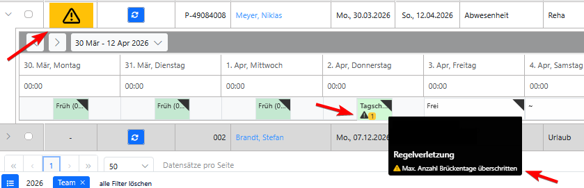 Wird angezeigt, wenn durch die Anfrage eine Regelverletzung ausgelöst wurde.Personalnr. / Mitarbeitender